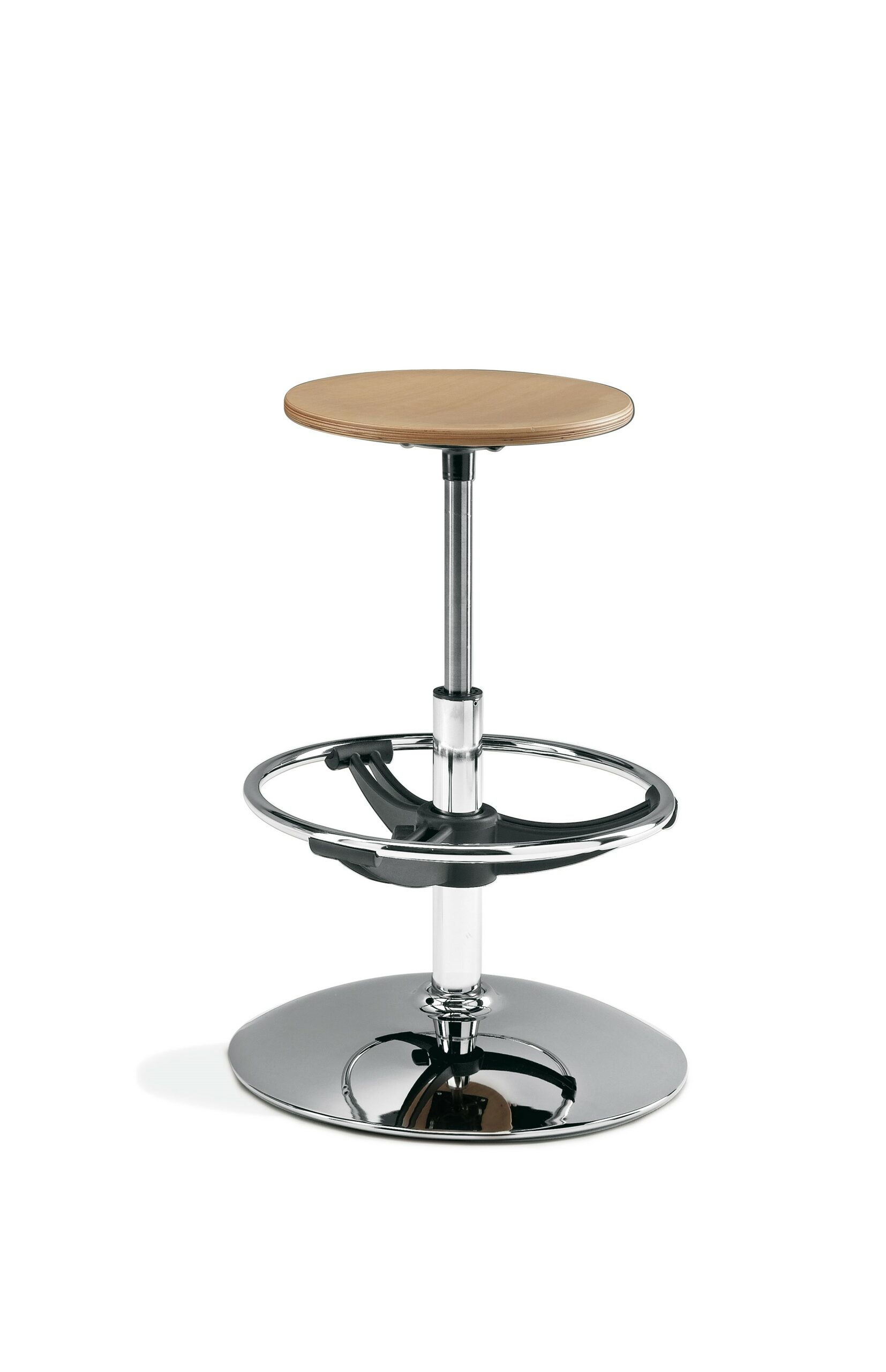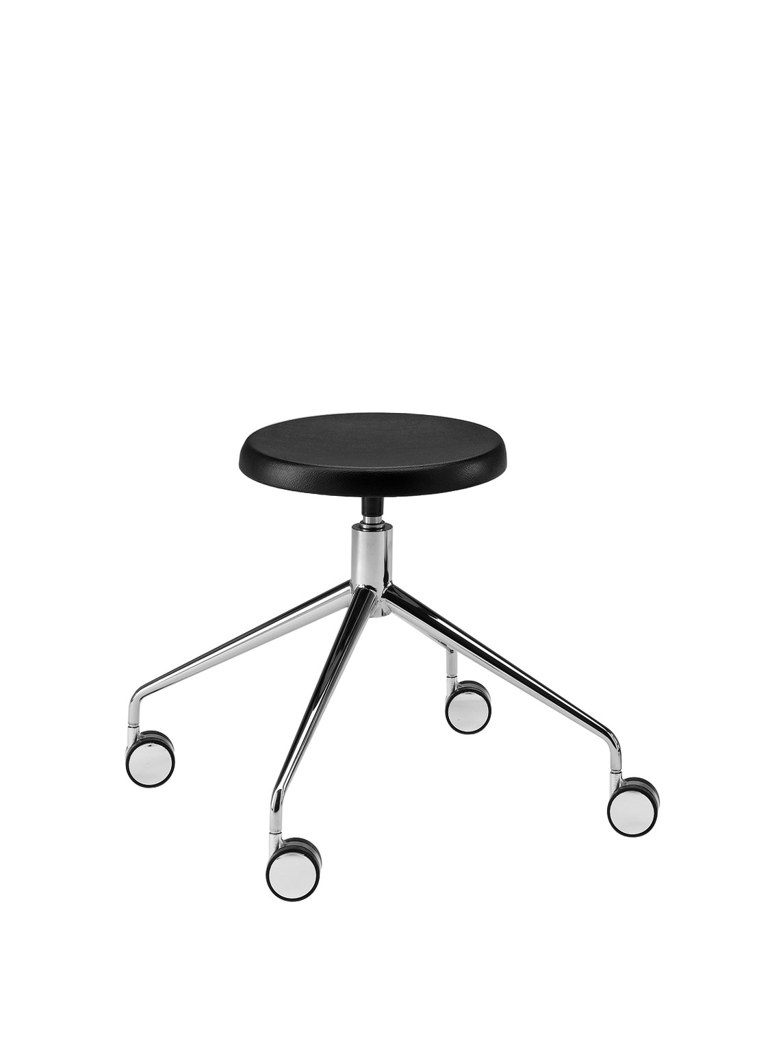 Die Hocker der Kat-Linie sind Teil der Stools-Kollektion von Kastel. Der Bürodrehhocker Kat mit Untergestell und Rückenlehne ist mit festem Untergestell, mit Füßen oder mit Rollen erhältlich.