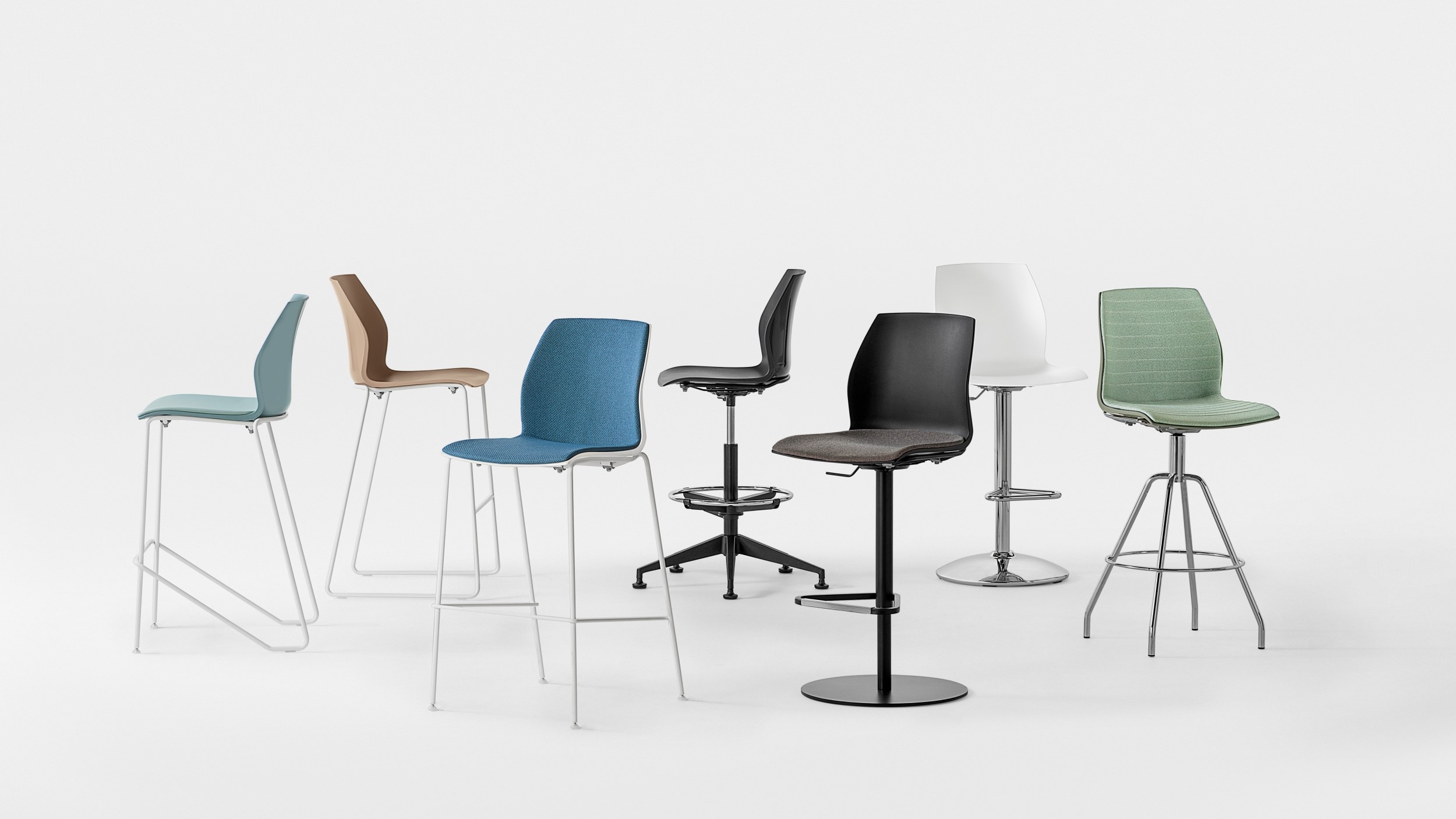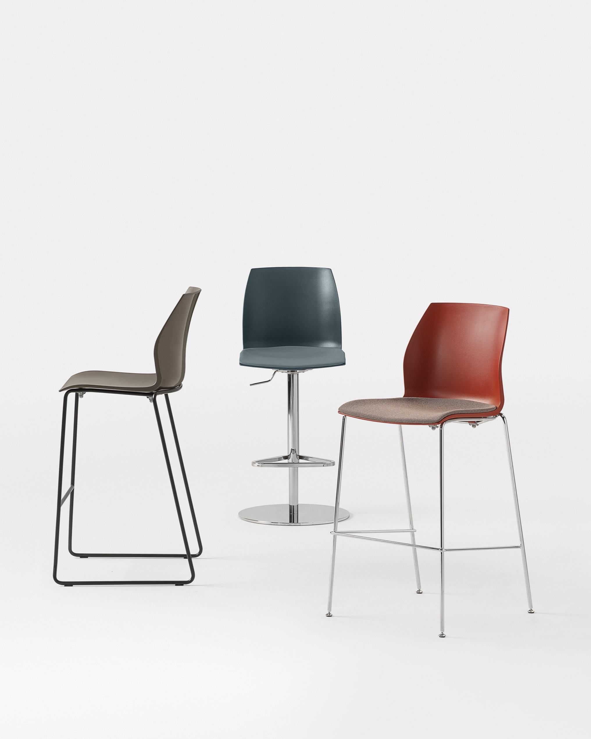 Los taburetes de la línea Kalea forman parte de la colección Taburetes de Kastel. El taburete de polipropileno Kalea está disponible en las versiones de 4 patas, patín, semipatin, 4 patas giratorias y con base redonda plana o convexa. Disponible en varios tonos, el taburete de polipropileno Kalea puede ser monocolor, bicolor y revestido en varias soluciones.