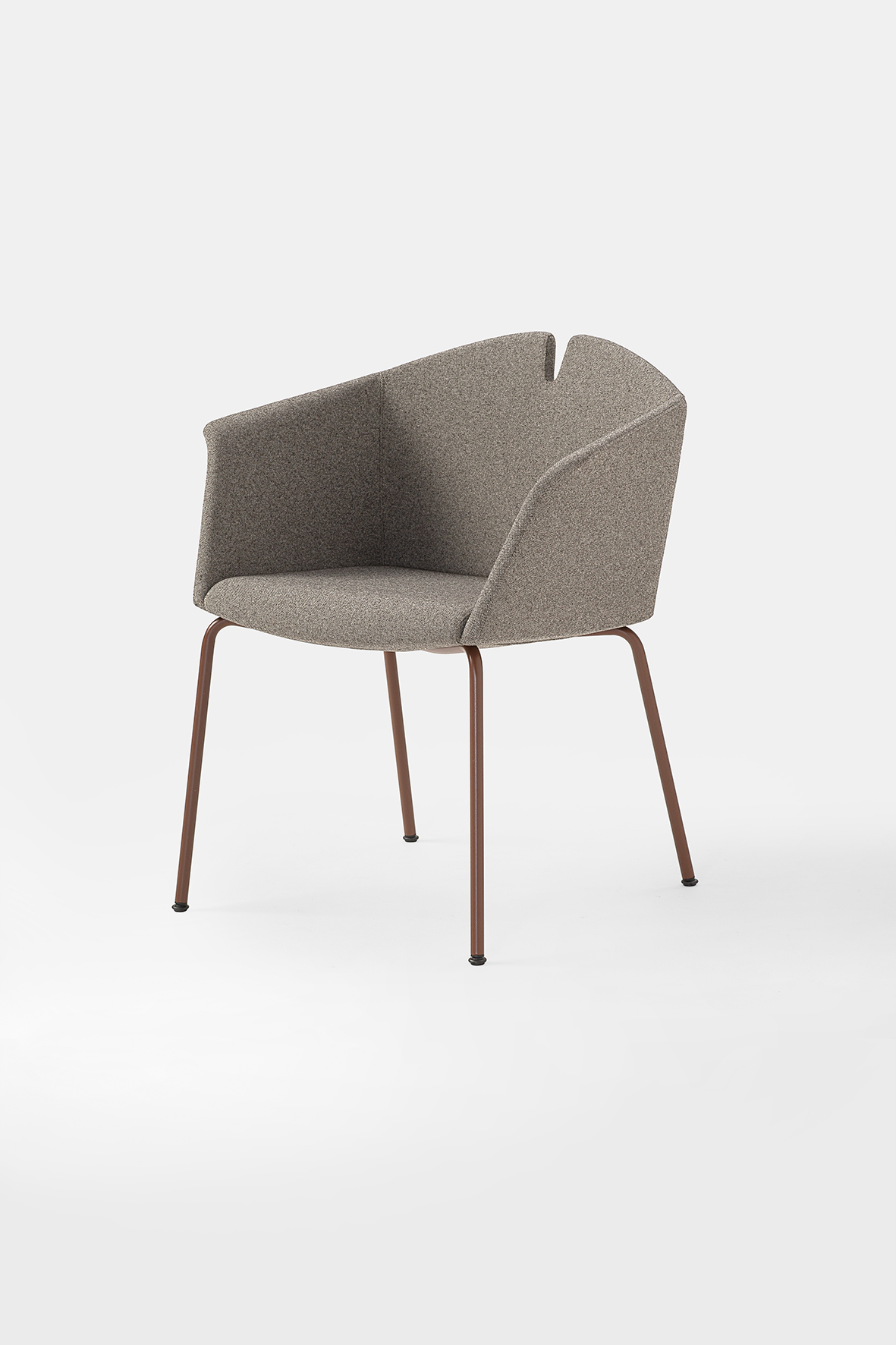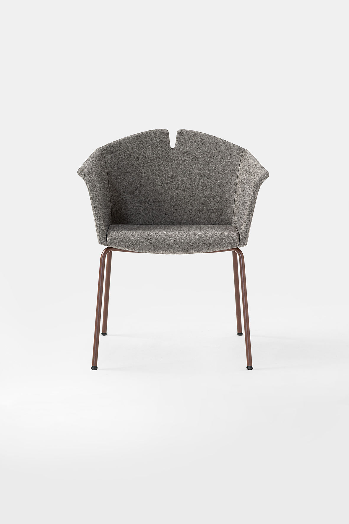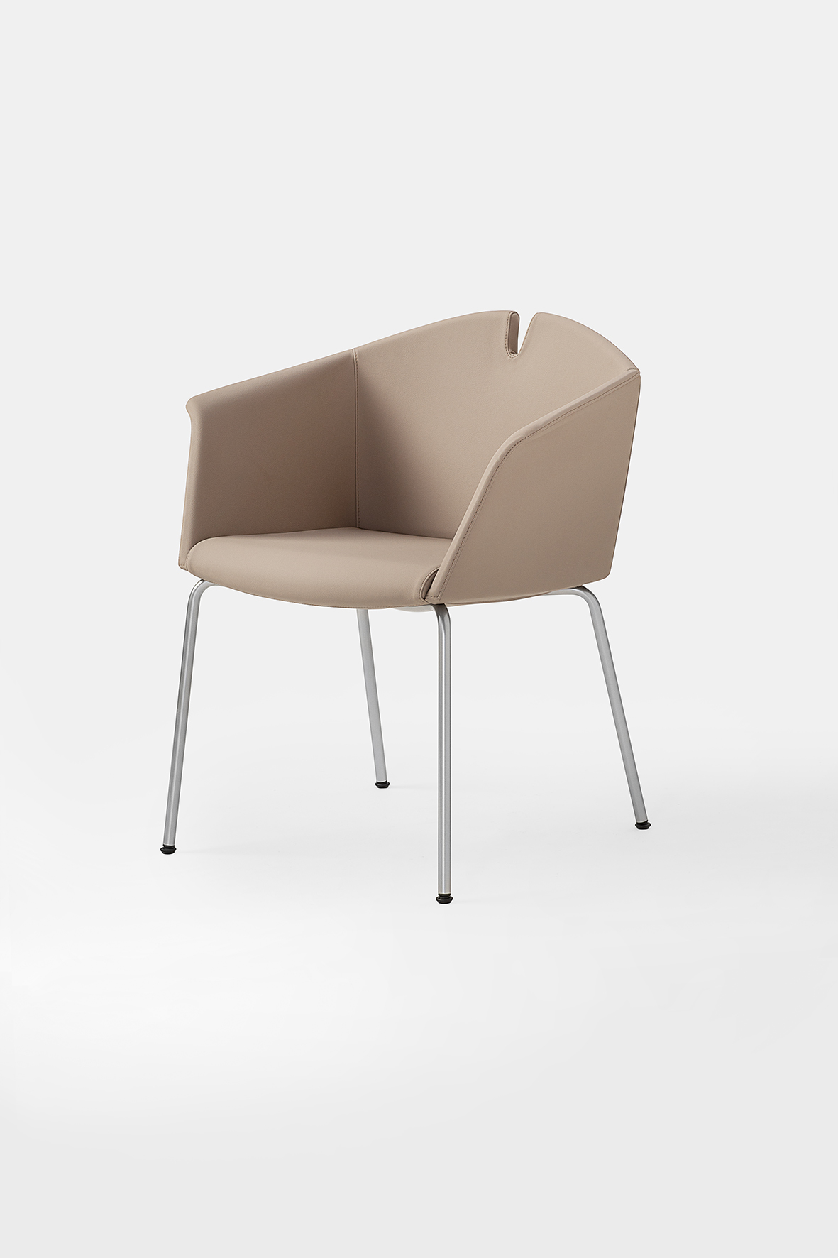 Intrigante y original, Kuad destaca por su elaborado diseño. Disponible con tapicería lisa o acolchada, distintas variantes de armazón, reposabrazos integrados y la comodidad de un respaldo flexible.