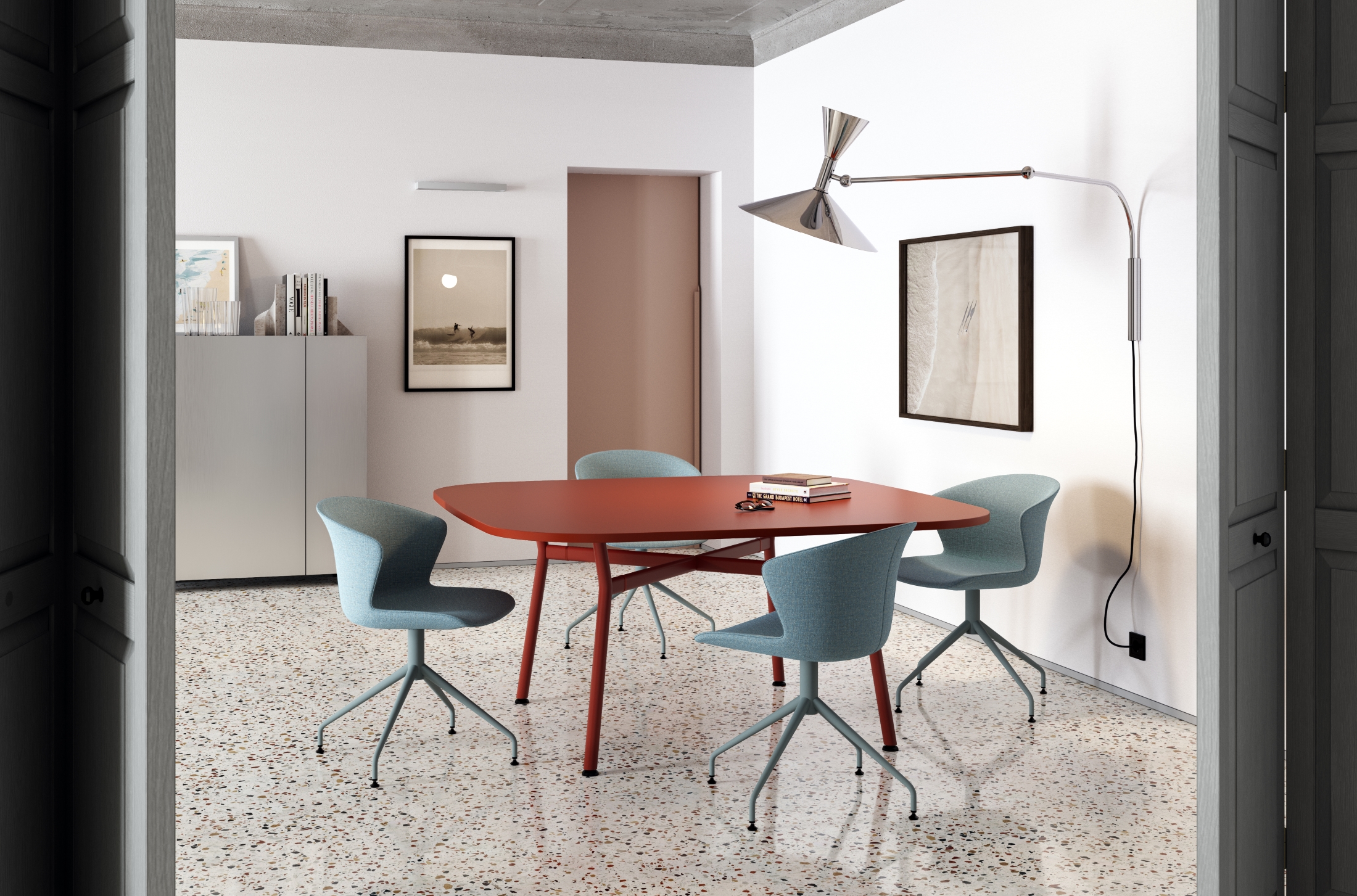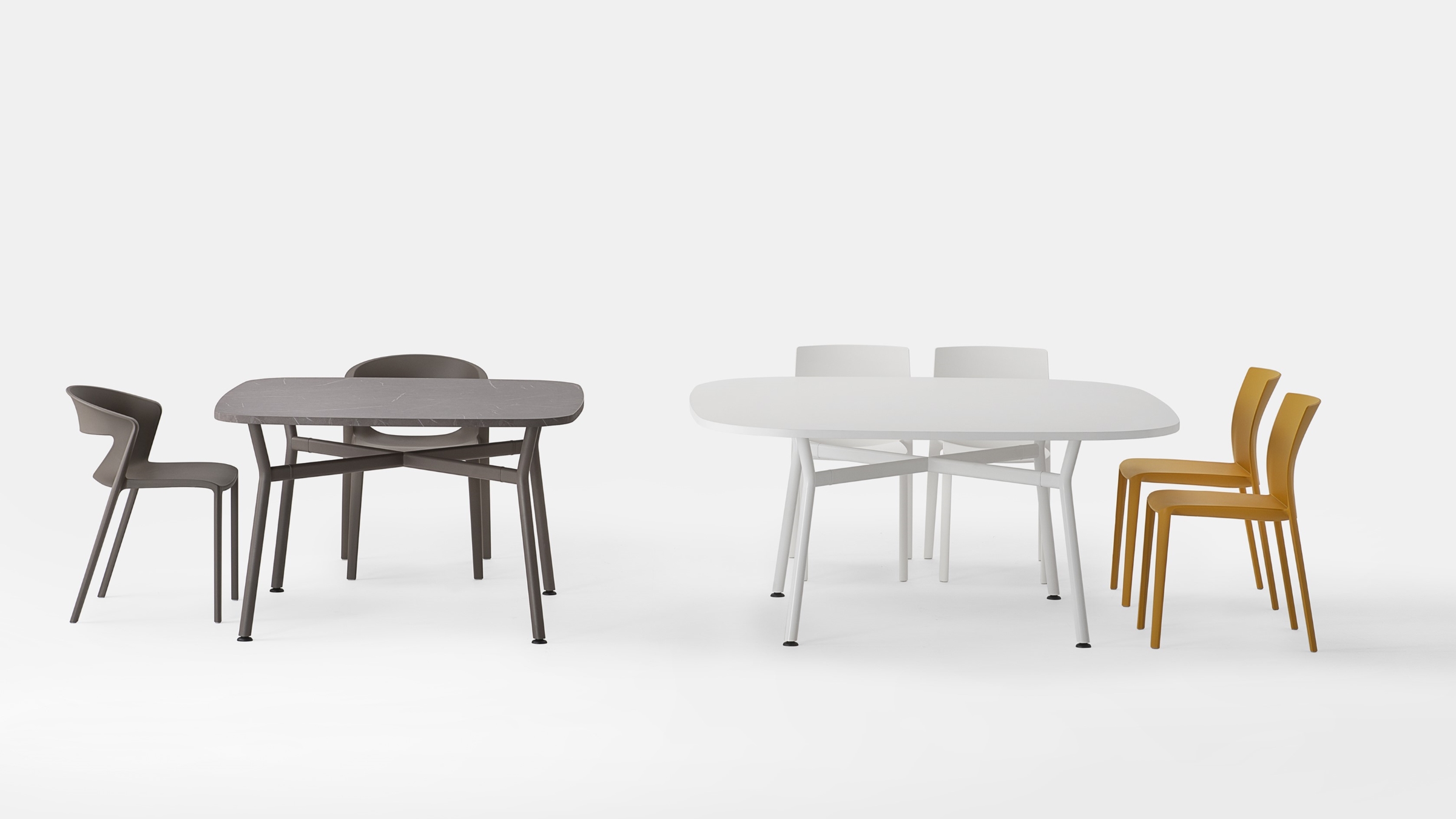 Kairos è un tavolo che in un unico gesto coniuga equilibrio e leggerezza, trasformando il contesto di una piccola riunione in un’esperienza di condivisione autentica.