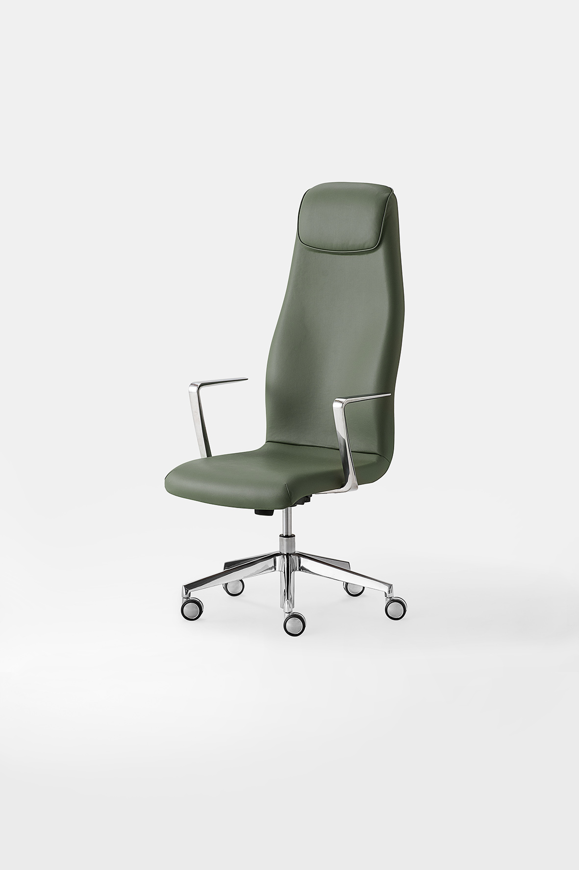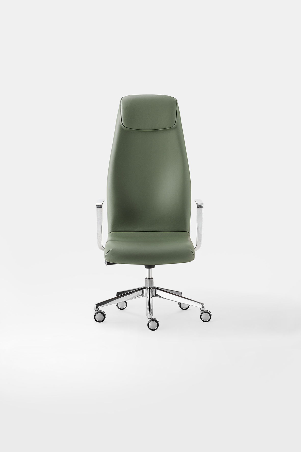 Le sue linee pulite, essenziali e mai banali, esprimono un’estetica senza tempo, dove ogni dettaglio è pensato per accogliere il corpo e accompagnare la mente. Lo schienale alto, avvolgente ma snello, trasmette un senso di protezione ed autorevolezza, esaltando la leggerezza del design con un tocco contemporaneo.