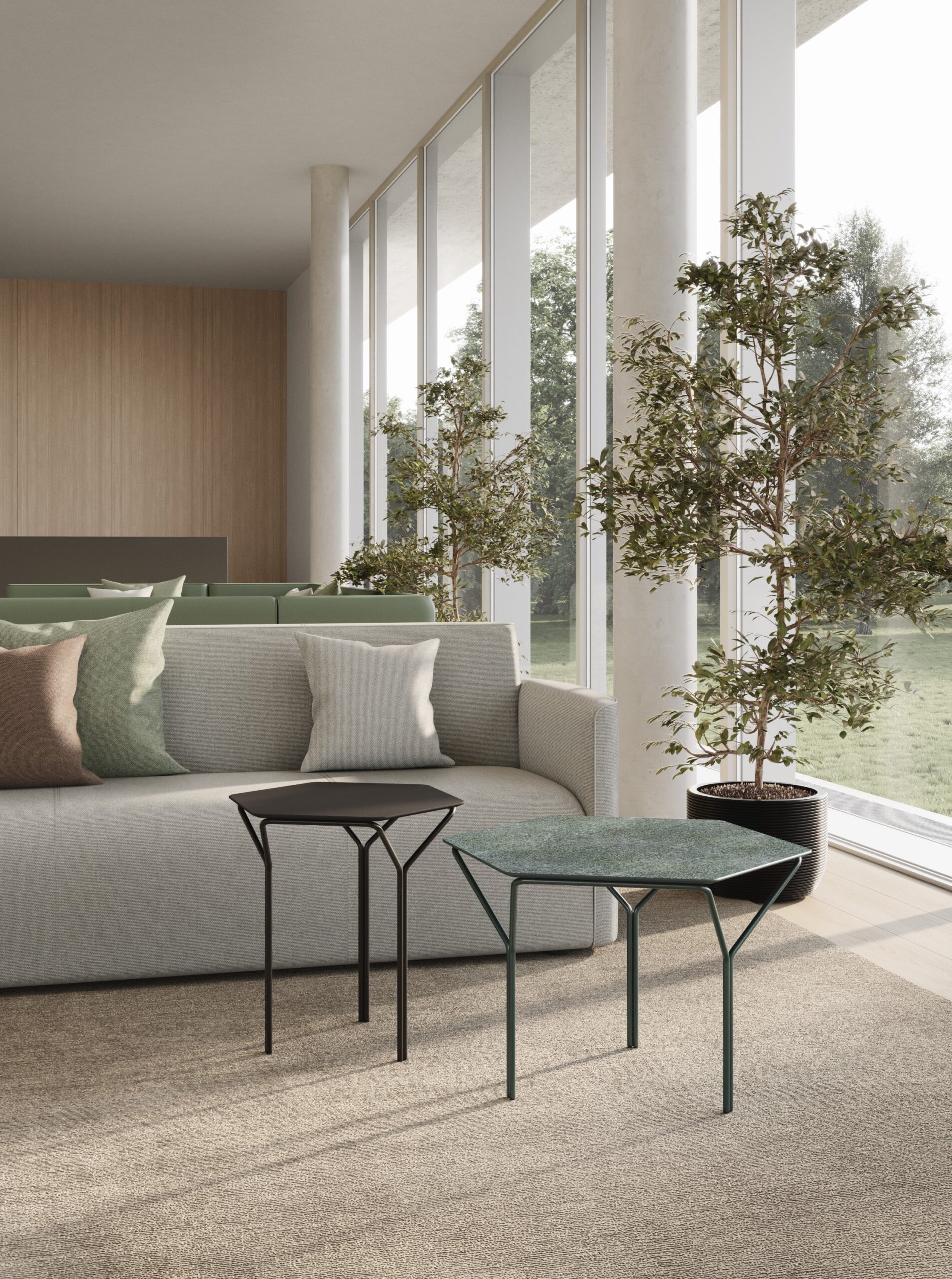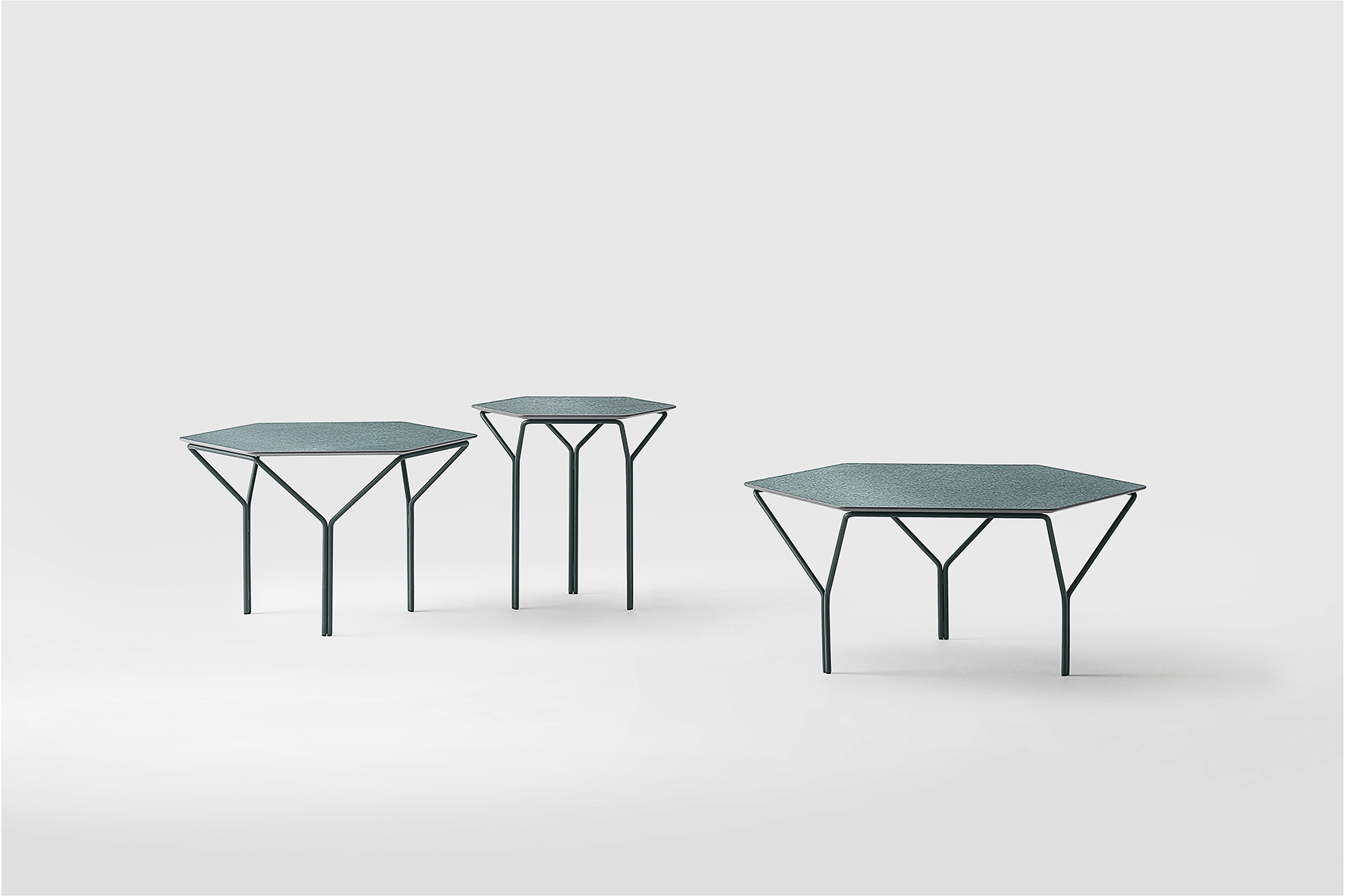 Una geometria creativa: è così che ci piace definire Kyu, il tavolino esagonale caratterizzato da una struttura a tre Y. Disegnato da Franco Driusso, disponibile in altezze e finiture differenti, Kyu fa dello spazio una texture viva e dinamica. Bianchi, neri e nel materico verde rame, i tavolini Kyu esprimono l’universo che li ispira: semplicità ed essenzialità, linearità e simmetria.